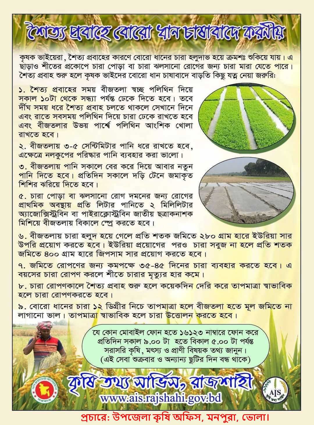 কৃষিতে তীব্র শীতে করণীয়,উপজেলা কৃষি অফিস, মনপুরা, ভোলা।